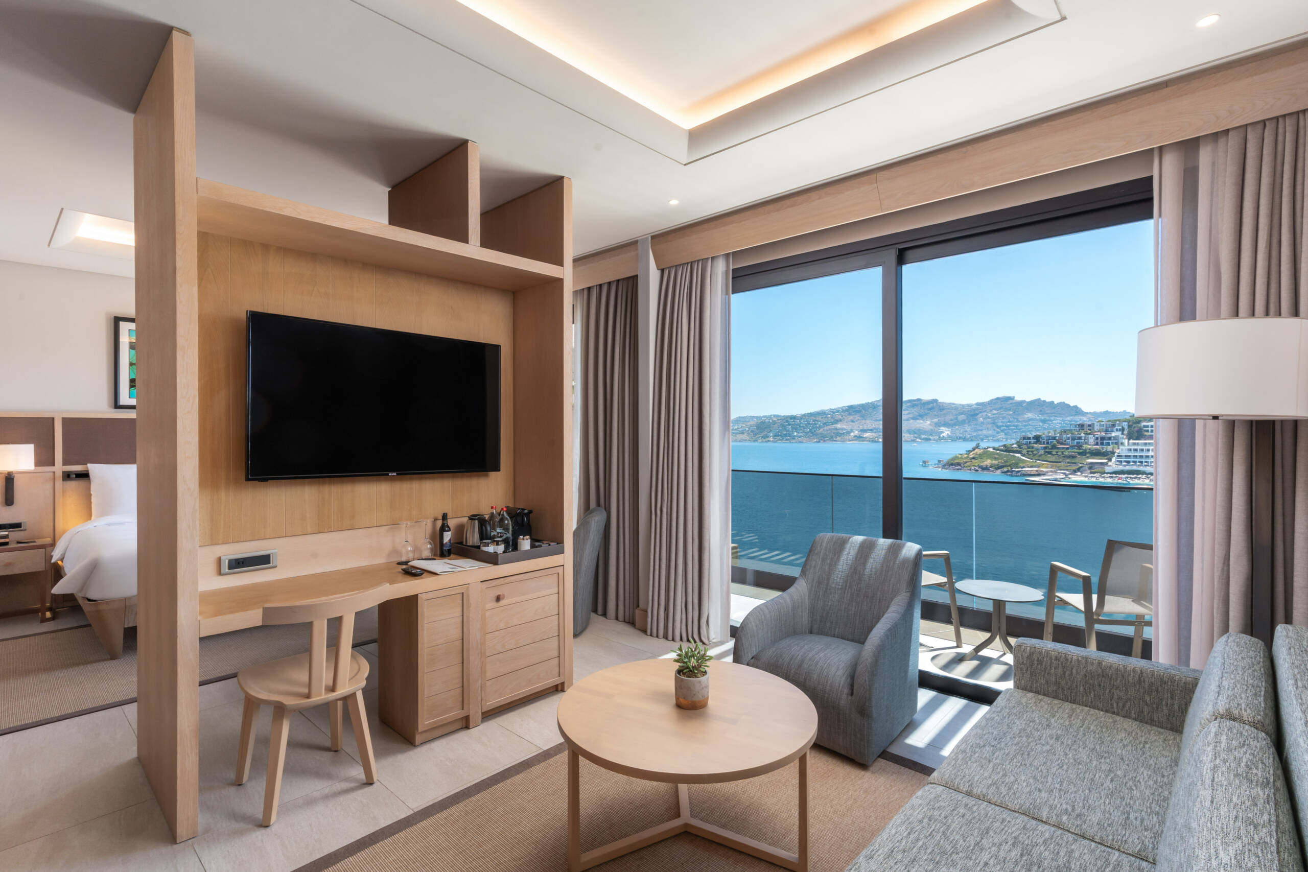 58 m² büyüklüğünde ve balkonludur. Deniz manzaralı ve tek büyük odadan oluşmaktadır. Maksimum 3 yetişkin bir çocuk kapasiteli bu odalarda, 1 adet çift kişilik yatak, 1 adet sofa ve 2 adet TV bulunmaktadır.